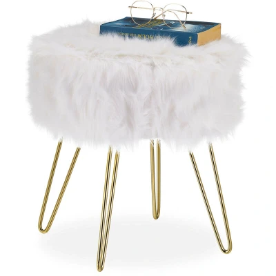 AmazonSoft: Padded plush stool for pleasant sitting comfort at a low height - H x Ø: approx. 40 x 38 cm Elegant: White, slightly shiny faux fur with golden hairpin legs - Glamorous and modern seat stool Versatile: Whether as a pouf, side chair or footrest - The fashionable stool is a true all-rounder Fluffy: Cuddly faux fur feels good on the skin - Decorative stool with pleasant, comfortable touch Stable: Metal frame ensures that the fur stool stands firmly - Load 300kg - Quick and easy assembly