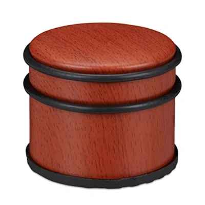 AmazonSecure hold: Thanks to its weight and the non-slip rubber underside, the door stop is very stable Design: Made from stainless steel and rubber, red-brown wood effect - Size Hx∅: approx. 8 x 9.5 cm Versatile: The doorstopper can be moved freely - Simply pick up and place elsewhere Protective: The rubber rings protect floors, doors and windows from scratches and dents Solid: Thanks to the door stop, windows, patio and balcony doors won’t slam loudly anymore