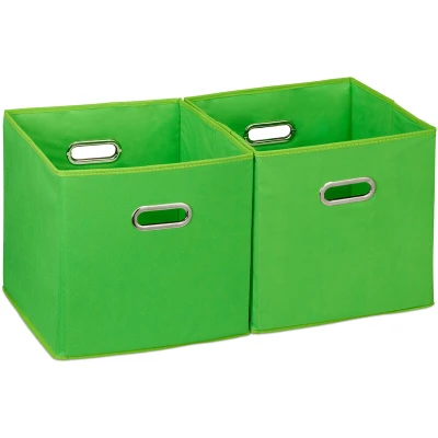 Relaxdays Storage Box Set of 2, No Lids, With Handles, Folding, Square Shelf Bins, 30 x cm, Green