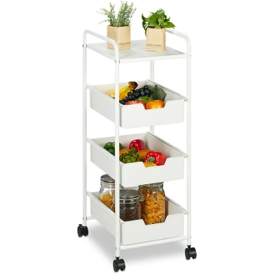 Relaxdays Storage Trolley, 3 Drawers, Cart for Kitchen, Bathroom & Office, Rolling Shelf, HWD 85.5 x 32.5 40 cm, White