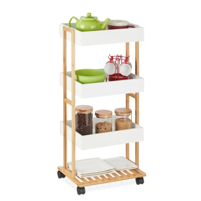 Relaxdays Storage Trolley, 4 Shelves, H x W D Approx. 88 40 30 cm, Bamboo, Natural/White