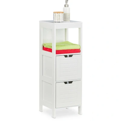 Relaxdays Storage Unit, 2 Drawers, 1 Shelf, Bathroom, Bedroom, Kitchen, Freestanding, HxWxD: 90 x 30 cm, White, Fibreboard