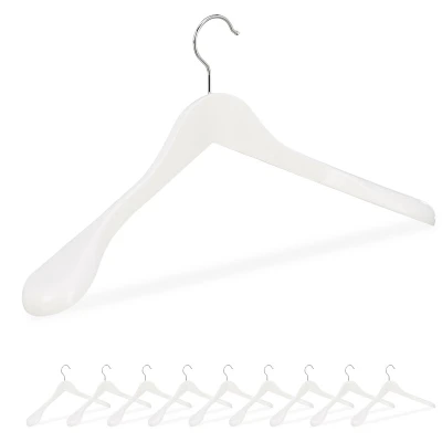 Relaxdays Suit Hangers Set of 10, Wide Shoulders, 360 Swivel Hooks, Jackets, Wooden Coat Holders, White