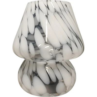 AmazonMODERN DESIGN: Mushroom-shaped glass lamp with a white speckled pattern as a chic home accessory FLEXIBLE LIGHT COLOURS: 3 selectable LED colours to create the perfect atmosphere in your home. ENERGY-EFFICIENT: Modern bedside lamp for E27 bulbs – lasts up to 15,000 hours COMPACT SIZE: Bedside lamp fits perfectly on a table or shelf – mushroom lamp H x D: ca. 24 x 16 cm VERSATILE: Mushroom design decorative lamp as a gift idea or focal point for any home