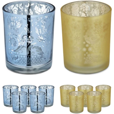 @@@IfrOHML3QdKF5edAPJayQXaWeEfqI9UE@@@ description If you seek to create a cosy atmosphere, lighting is a crucial factor that must not be neglected. These 12 tealight holders are a unique way to jazz up your home. Spread the candle glasses around your living room or conjure up atmospheric lighting on your dining table. You can also use the decorative glasses on your patio or in the garden. Thanks to the clever mix of floral and Christmas designs, the votive holders are perfect all year round and for important celebrations. Technical specifications Height: approx. 8.5 cm (3.3 in.) Bottom diameter: approx. 6.5 cm (2.6 in.) Upper diameter: approx. 7 cm (2.8 in.) Weight: approx. 180 g Material: Glass Colour: Gold/Silver Other information Round decorative glasses for tealights, votives, and candles With decorative Christmas and floral patterns Perfect for indoor or outdoor use Mixed set means they can be used all year round Included in delivery: 12 x tealight holders (decorative items and candles are not included)