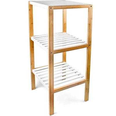 Relaxdays Three Tier Bamboo Storage Unit Shelf/Rack, Wood, White, 80 x 33 34 cm