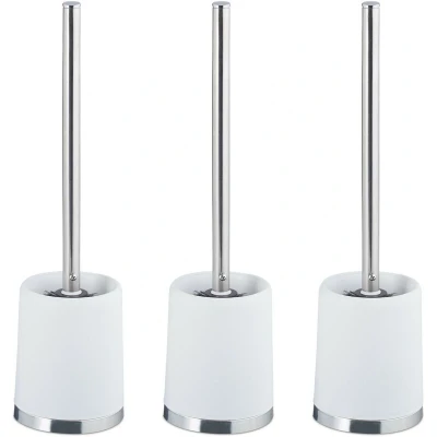 Relaxdays Toilet Brush with Holder, Set of 3, Removable Head, Inner Thread Ø 7cm, Plastic, Loo Cleaner, WC, Matt White