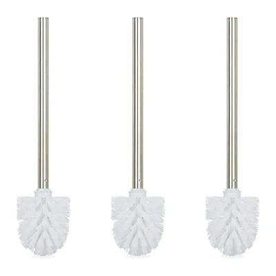Relaxdays Toilet Brushes, Set of 3, Replacement, Removable Head, Stainless Steel Handle, H x diam. 35 8 cm, White