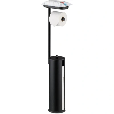 Relaxdays toilet roll holder, for 4 spare rolls, with shelf, metal, HxWxD: 91 x 22 14 cm, free standing, black