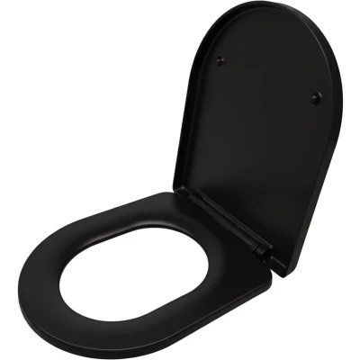 AmazonUniversal: Black toilet seat for standard D-shaped toilets – W x D: approx. 36 x 42 cm Soft-close: Toilet seat with a practical soft-close feature – closes gently without loud slamming Hygienic: Toilet seat with quick-release function - Thorough cleaning of hard-to-reach areas Practical: Toilet seat for easy top installation - adjustable mounting hole distance. Durable: Toilet seat made of easy-care Duroplast – robust and scratch-resistant material