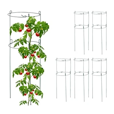 AmazonIn the set: Round climbing aid in a practical set of 6 - For supporting plant growth Growth support: Grow cones help climbing plants thrive and flourish - For roses, ivy, tomatoes etc. Variable: The dark green stakes with grow rings are suitable for most outdoor areas or greenhouses Setup: Easy and quickly installation thanks by pushing the stakes into the soil of your flower bed Details: Tomato climbing aid with 2 rings - Dimensions H x D: approx. 76 x 26 cm