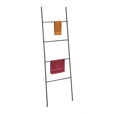 Relaxdays Towel Ladder, 4 Rungs, Rack for Clothes, HxW: 171 x 55 cm, Leaning Blanket Holder, Metal, Bathroom, Black, Plastic, Iron, Steel
