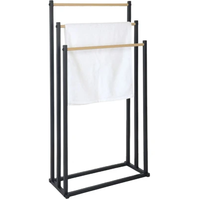 Amazon MarketplacePractical: floor lamp with 3 rods at different heights - ensure perfect air circulation Look: towel rail with metal frame and light wood style bars - Scandinavian design VERSATILE - The towel rail is perfect for hanging bath towels, shower towels or clothes Space-saving: floor stand for bath or bedroom towels - flexible positioning Details: Dimensions of the towel holder H x W x D: approx. 86 x 44 x 21 cm - Wide base for great stability