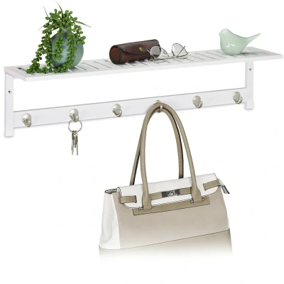 Relaxdays Towel Rack with 6 Hooks and Shelf, for Hallway, Kitchen & Bathroom, Modern, Bamboo, HWD: 18 x 75 16cm, White
