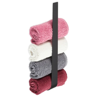This towel rack is the ideal bathroom accessory for households that want to create storage space and save room. The self-adhesive towel rail is attached to the wall without drilling. Decide for yourself whether you want to mount it vertically or horizontally. Thus, the shower towel rail offers the possibility to hang bath towels or tea towels or to store rolled guest towels neatly. In addition, the towel rail convinces with its high-quality manufacturing from brushed stainless steel. Note: For optimal hold, clean the surface before attaching the holder. After removing the protective film, press it firmly onto the wall and wait about 24 hours before using it for the first time. Towel Holder in Detail - Dimensions H x W x D: approx. 4 x 36 x 6- Load capacity: max. 4 kg - Weight: approx. 310 g- Material: 430 stainless steel- Colour: Black Self-Adhesive Towel Rail for the Bathroom - Can be mounted horizontally or vertically- Self-adhesive holder for easy mounting without drilling
