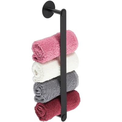 This towel rack is the ideal bathroom accessory for households that want to create storage space and save room. The self-adhesive towel rail is attached to the wall without drilling. Decide for yourself whether you want to mount it vertically or horizontally. Thus, the shower towel rail offers the possibility to hang bath towels or tea towels or to store rolled guest towels neatly. The towel rail impresses above all with its high-quality manufacturing from stainless steel and aluminium. Towel Holder in Detail - Dimensions H x W x D: approx. 5.5 x 40.5 x 7 cm- Usable width of bar: approx. 38 cm- Load capacity: approx. 5 kg- Weight: approx. 200 g- Material: Stainless steel, aluminium- Colour: Black Self-Adhesive Towel Rail for the Bathroom - Can be mounted horizontally or vertically- Self-adhesive holder for easy mounting without drilling- Versatile use as towel or tea towel holder- Stylish, timeless design for bathroom, kitchen and guest WC- Made of high-quality stainless steel and