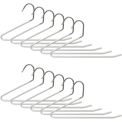 AmazonIncluded in the set: The white trouser hangers in a 12-pack provide a uniform look in your wardrobe Space-saving: metal trouser hangers allow efficient storage of trousers, skirts, and scarves. Rubberised: Thanks to the non-slip PVC coating, your clothes stay securely on the trouser hangers. Narrow: The S-shaped design of these space-saving hangers with 1 rod takes up little wardrobe space. Basics: Trouser hanger made of iron and PVC - HWD: 17.5 x 35 x 0.5 cm - Max load: 3 kg