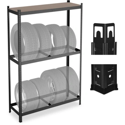 Relaxdays tyre rack for 8 tyres, HxWxD: 180 x 120 40 cm, 795 kg, steel, easy assembly, wheel with shelf, black