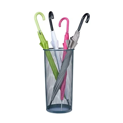 Relaxdays Umbrella Stand, Round, Mesh Design, H x D: 50 26 cm, Metal, Grey, Steel