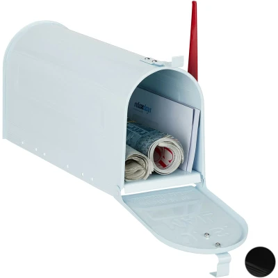 AmazonLarge US letterbox made of galvanized steel, powder-coated with US mail embossing Trendy flag in red indicates when mail is in - Pure retro flair - In white Sturdy lid - Can be opened by hand - The latch stays closed even in wind and storms Spacious newspaper slot - Inner HxWxD: app. 18.5 x 14.5 x 47 cm Outer HxWxD: app. 25 x 19 x 52.5 cm, 32 tall with upright flag - Weight app. 2 kg