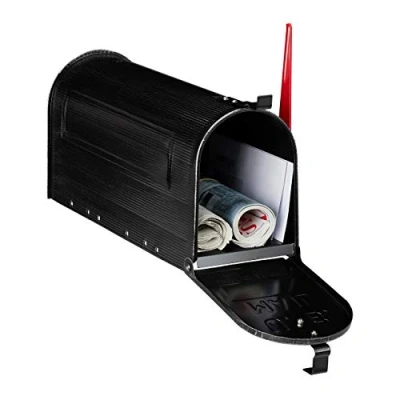 AmazonU.S. Mailbox: Large- Galvanized steel, powder-coated - Vintage black - US mail embossment Trendy flag: Trendy flag in red indicates when mail is in - Pure retro flair Sturdy lock: Sturdy lid - Can be opened by hand - The latch stays closed even in wind and storms Spacious compartment: Spacious newspaper post - Inner HxWxD: app. 18.5 x 14.5 x 47 cm Outer HxWxD: app. 22 x 16 x 48 cm, 32 tall with upright flag - Weight app. 2 kg
