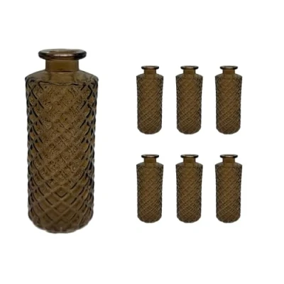Amazon MarketplaceElegant: Set of 6 vases with a textured finish in vintage style – ideal for chic table decoration Made of glass: Brown bottle vases made of durable glass - With a thick base for stability Versatile: decorative vases for creative flower arrangements – ideal for events or everyday use Compact: Mini vases for single blooms, stems or twigs – perfect for small spaces Details: Glass vases Dimensions H x D: approx. 13 x 5 cm - Display as a set or individually