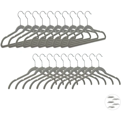Relaxdays Velvet Clothes Hangers, Compact Storage, Non Slip Velour Cover, 360 Swivel Hook, Suit, Pants, Set of 20, Grey, Pack 20