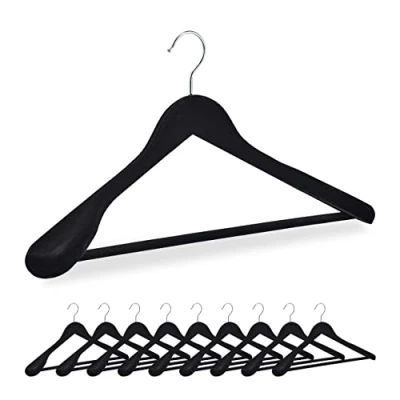 Relaxdays Velvet Coat, Set of 10, Wood, Wide Width with Trouser Bar, 360 Clothes Hook, Suit Hanger, Black, 23.5 x 45 7 cm