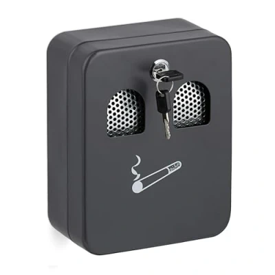 AmazonPractical: No more messy lying around cigarettes thanks to the wall ashtray - Ideal for outdoor use Cleaning: Open the door with the included key, remove the inner silver coloured ashtray and empty it Versatile: Ashtray for smoking area in front of the office, restaurants, bars and entrance area Design: Metal ashtray in anthracite with white cigarette sign - Easily recognisable as an ashtray Details: Robust outdoor ashtray made of iron - HxWxD: approx. 20x16x8.5 cm - With mounting material