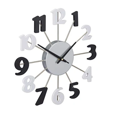 Analogue: Wall clock with Arabic numbers - Battery powered clock with hour, minute and second hands Modern: Silver kitchen clock with large numbers in black and white - Stylish wall decoration Versatile: Chic clock is ideal for kitchens, living rooms bedrooms and even offices Hang-up: Clock without frame easy to hang on any wall - Eye catching in any room of the home Details: Clock size DxD: approx. 35 x 4cm - Requires 1x AA battery (not included)