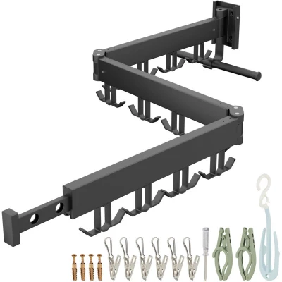 Amazon MarketplaceSpace-saving: Black wall-mounted dryer with folding design – for compact spaces and bathrooms Robust: Durable, rustproof aluminium ensures stability when used as a clothes airer Spacious: Wall-mounted drying rack with multiple hanging options for laundry, towels, and more Flexible: With adjustable segments and rotating hooks, the wall-mounted rack adapts to your needs -Simple: laundry rack - screw in or stick to wall - HWD: approx. 12x127x26 cm – Folded: 8 cm deep