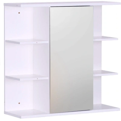 AmazonHanging: Wall-mounted mirror cabinet for more space in the bathroom – white cabinet Practical: Decorative wall cabinet with rectangular mirror – ideal for your daily bathroom routine Compact: bathroom cabinet with 2 adjustable shelves behind the mirror door and 6 open compartments Sturdy bathroom cabinet made of strong MDF - Each shelf holds 2 kg - Each compartment supports 5 kg. Details: Wall cabinet dimensions H x W x D: 64 x 62 x 21 cm - Includes assembly guide and fixtures.