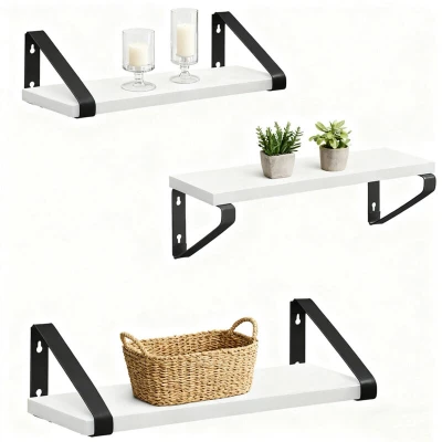 AmazonWall decoration: hanging shelves for added charm – hang in hallway, kitchen, bedroom or living room Design: Set of 3 floating shelves – white wood-effect and black metal Decorative wall shelves in 3 sizes - width approx. 30/35/40 cm, load per shelf approx. 8 kg Variable: wall shelves can be mounted with the shelf above or below – mounting kit included Storage: Wall shelves as decorative accessories – for souvenirs, photos, plants, spices & more.