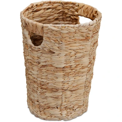 Relaxdays Waste paper made of water hyacinth, kitchen and bathroom, small laundry, H x D: 32 25 cm, basket planter, natural, 80% plant fibre 20% iron, 32x25 cm