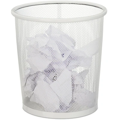 Relaxdays Wastebasket, Wastepaper, Office & Home, Round, Wire Mesh, Paper Bin, Metal, H x D: 24 23 cm, White