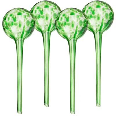 AmazonConvenient: Large watering balls in a set of 4 - practical plant waterers for your garden plants Details: Green glass watering balls - size HxD: 30 x 9 cm - volume: 350 ml each Worry-free: Plants survive a few days without watering - globes ideal for short holidays or office Simple: Fill the flower waterer with water and lower it into the ground - for automatic watering Practical: Watering cones for the home and balcony - watering aids for houseplants and balcony boxes