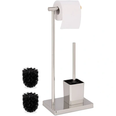 Relaxdays WC Set, HxWxD: 66.5 x 23 18 cm, Free standing Toilet Roll & Brush Holder, Stainless Steel, Choice of Colours