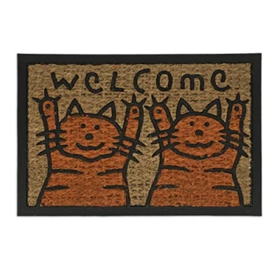 This unique doormat with cute cats will put a smile on your guests' faces before they even open the door and give them a funny greeting. It is made of a material mix of sustainable coconut and PVC. Thanks to the natural coconut fibres, the doormat is robust and durable. Thanks to its non-slip rubber underside, the doormat sticks firmly to the floor when shoes are trodden on and keeps the living space reliably clean. The weatherproof shoe mat can be placed both indoors and outdoors. Note: Coir fibre is a natural material and can vary slightly in the structure and colour of the fibre. Coir Doormat Details - Dimensions H x W x D: Approx. 0.5 x 60 x 40 cm - Weight: Approx. 0.9 kg - Materials: Coir fibre, Rubber - Colour: Orange, Natural Brown, Black- Text: Welcome Non-Slip Doormat for Doors and Backdoors - Suitable for indoor and outdoor use - Helps keep dirt out of the flat or house- Made from robust, weatherproof coir fibres- PVC anti-slip coating- Cute and funny cat print- Perfect gift