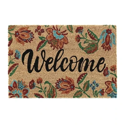 AmazonDecorative: Ornate welcome flowers print entrance mat - Welcome guests with flowers Robust: Door rug made of resistant coconut fibres - Natural, environmentally friendly & weatherproof Non-slip: PVC-coated underside for a secure grip - Rubberised shoe mat for all floors Universal: Beautiful shoe mat for indoors and outdoors - As a practical decoration inside & outside Practical: No dirt or shoe prints in the house - Simply dust off the mat to clean it