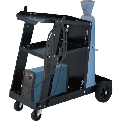 Relaxdays Welding Trolley, 3 Shelves, Storage Space for Gas Cylinder, Equipment Cart, load 90 kg, HxWxD: 69 x 40 71 cm, Steel