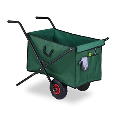 Relaxdays Wheelbarrow Folding 160 L with Handles & 2 Pneumatic Tyres up to 50 kg Garden Transport Trolley Green, Rubber