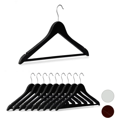 Relaxdays Wooden Coat Hangers Set of 10, Notches, Pants Rail, 360 Swivel Hooks, 44.5 cm Wide, Black