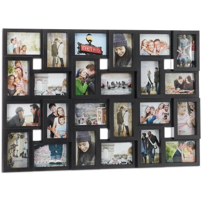 Relaxdays XXL photo frame collages for 24 pictures in 10 x 15, portrait or landscape format, plastic, H 53 W 85 cm, black