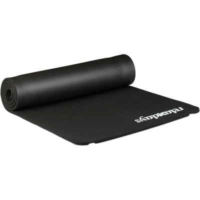 Relaxdays Yoga Mat, 1 cm Thick Training for Pilates and Aerobics, HxWxD: x 61.5 182 cm, Black