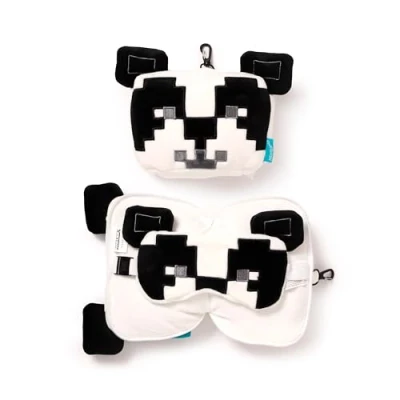 Relaxeazzz Minecraft Panda Shaped Plush Travel Pillow & Eye Mask Sleep Masks Kids Accessories For Sleeping Airplane Flight Plane Neck Pillows