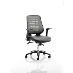 Relay Task Operator Chair Silver Back with Folding Arms Black Leather Seat