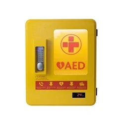 FEATURES: This AED heated cabinet is compatible with all AEDs models and ideal for outdoor uses thanks to its heating system, mechanical, lit keypad, digital temperature display and integrated alarm SECURE: The cabinet is wall mountable, has three security options, AED signage and general guidelines icons COMPONENTS: Mechanical keypad, Alarm (120 DB), Heating system, Thermostat, Magnetic LED light, 9V blue LED light, 9V blue transformer DIMENSIONS: Internal - 37cmH x 38cmW x 17cmD, External - 50cmH x 40cmW x 22cmD RELIANCE MEDICAL - We are a leading distributor of medical equipment and first aid supplies