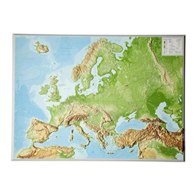 Reliefkarte Europa Gross 1 : 8.000.000 mit Aluminium Rahmen: grünfarbenen Holzrahmen