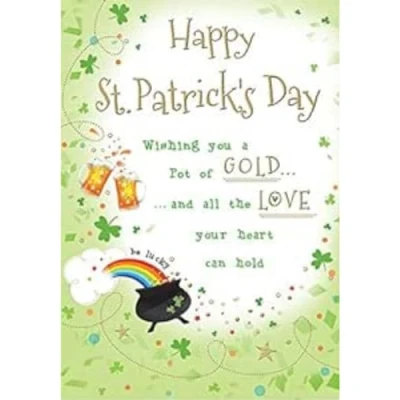 High quality greeting card and envelope Caption: St Patrick's Day Description: Pot of Gold Approximate size (inches): 7 x 5 Designed and made in the UK