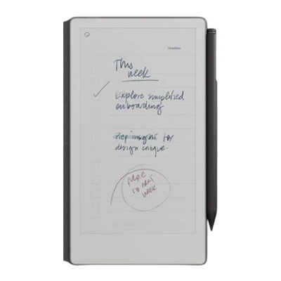 The reMarkable Paper Pro Move's pocket-sized design makes it perfect for taking notes on the go. Its 7.3" e-ink screen mimics the texture of real paper, giving you a natural writing experience with ultra-low latency. It can display 9 colours, so you can liven up your documents or highlight the important bits. It can even convert your handwriting to text, so it's easy to read and work with. Plus, with seamless cloud integration, you can access and sync your notes across all your devices. So, everything stays organised and at your fingertips. Good to know - Marker Plus is designed to give you the perfect handwriting experience on the reMarkable Paper Pro - It's got an adjustable reading light, so you can keep the bedside lamp off while your read - Misspelled a word? Just flip the Marker Plus over and erase like you would with a pencil - The distraction-free software keeps you focused - no annoying notifications here - Screen Share lets you connect to a big screen and use your reMarkable as a digital whiteboard - With 15 days of battery life you can forget about nightly charging - It comes with the Premium Leather Book Folio - this cover keeps the tablet and marker safe when you're on the go